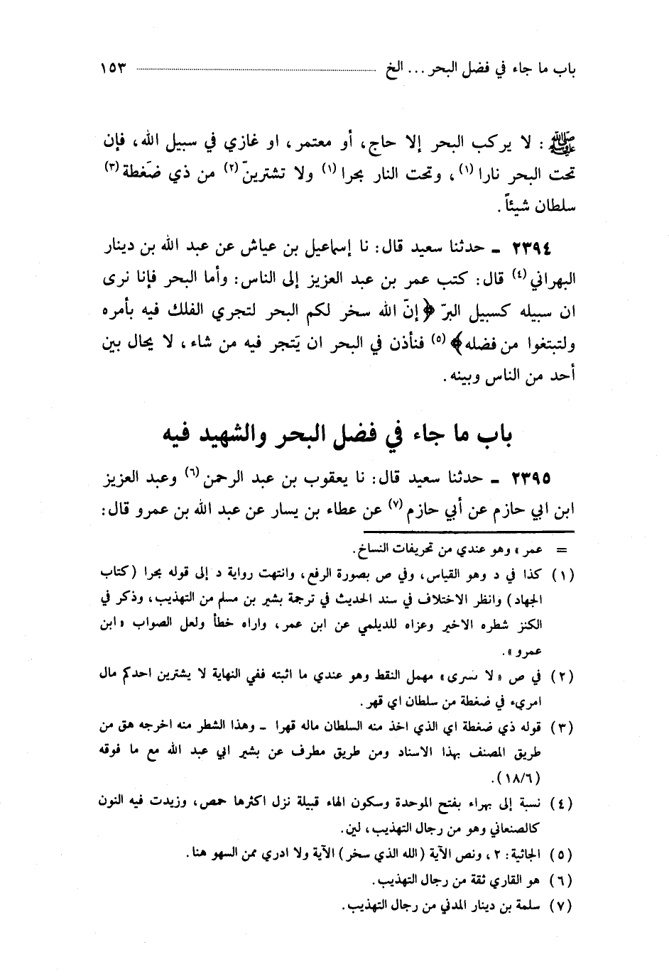 2394- حَدَّثَنَا إِسْمَاعِيلُ بْنُ عَيَّاشٍ ، عَنْ عَبْدِ اللهِ بْنِ دِينَارٍ الْبَهْرَانِيِّ ، قَالَ : كَتَبَ عُمَرُ بْنُ عَبْدِ الْعَزِيزِ إِلَى النَّاسِ : وَأَمَّا الْبَحْرُ فَإِنَّا نَرَى أَنَّ سَبِيلَهُ كَسَبِيلِ الْبَرِّ إِنَّ اللَّهَ سَخَّرَ لَكُمُ الْبَحْرَ لِتَجْرِيَ الْفُلْكُ فِيهِ بِأَمْرِهِ وَلِتَبْتَغُوا مِنْ فَضْلِهِ فَنَأْذَنُ فِي الْبَحْرِ أَنْ يَتَّجِرَ فِيهِ مَنْ شَاءَ ، لاَ يُحَالُ بَيْنَ أَحَدٍ مِنَ النَّاسِ وَبَيْنَهُ.