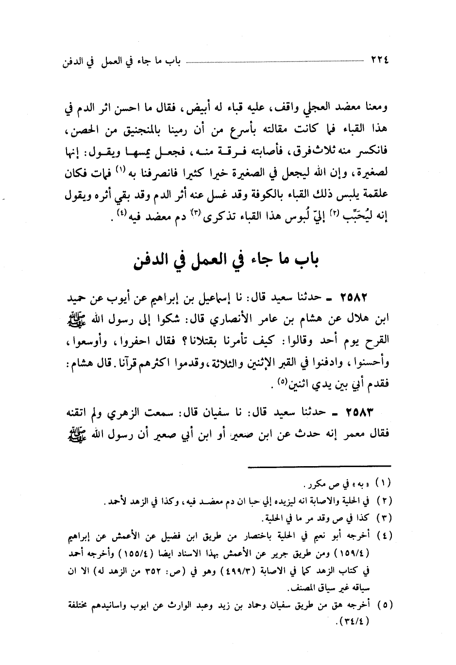 2583- حَدَّثَنَا سُفْيَانُ ، قَالَ : سَمِعْتُ الزُّهْرِيَّ ، وَلَمْ أُتْقِنْهُ ، فَقَالَ مَعْمَرٌ : إِنَّهُ حَدَّثَ عَنِ ابْنِ صُعَيْرٍ أَوِ ابْنِ أَبِي صُعَيْرٍ أَنَّ رَسُولَ اللهِ صَلَّى اللَّهُ عَلَيْهِ وَسَلَّمَ أَشْرَفَ عَلَى قَتْلَى أُحُدٍ ، فَقَالَ : قَدْ شَهِدْتُ عَلَى هَؤُلاَءِ فَزَمِّلُوهُمْ بِدِمَائِهِمْ وَكُلُومِهِمْ.