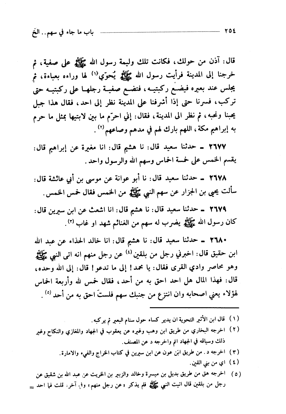 2680- حَدَّثَنَا هُشَيْمٌ ، قَالَ : أَخْبَرَنَا خَالِدٌ الْحَذَّاءُ ، عَنْ عَبْدِ اللهِ بْنِ شَقِيقٍ (1)، قَالَ : أَخْبَرَنِي رَجُلٌ مِنْ بَلْقَيْنِ عَنْ رَجُلٍ مِنْهُمْ أَنَّهُ أَتَى النَّبِيَّ صَلَّى اللَّهُ عَلَيْهِ وَسَلَّمَ وَهُوَ مُحَاصِرٌ وَادِيَ الْقُرَى ، فَقَالَ : يَا مُحَمَّدُ إِلَى مَا تَدْعُو قَالَ : إِلَى اللهِ وَحْدَهُ قَالَ : فَهَذَا الْمَالُ هَلْ أَحَدٌ أَحَقُّ بِهِ مِنْ أَحَدٍ ؟ فَقَالَ : خُمُسٌ لِلَّهِ وَأَرْبَعَةُ أَخْمَاسٍ لِهَؤُلاَءِ - يَعْنِي أَصْحَابَهُ - وَإِنِ انْتُزِعَ مِنْ جَنْبِكَ سَهْمٌ ، فَلَسْتَ أَحَقَّ بِهِ مِنْ أَحَدٍ.