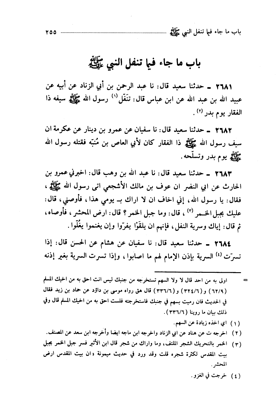 2681- حَدَّثَنَا عَبْدُ الرَّحْمَنِ بْنُ أَبِي الزِّنَادِ ، عَنْ أَبِيهِ ، عَنْ عُبَيْدِ اللهِ بْنِ عَبْدِ اللهِ ، عَنِ ابْنِ عَبَّاسٍ ، قَالَ : تَنَفَّلَ رَسُولُ اللهِ صَلَّى اللَّهُ عَلَيْهِ وَسَلَّمَ سَيْفَهُ ذَا الْفَقَارِ يَوْمَ بَدْرٍ.