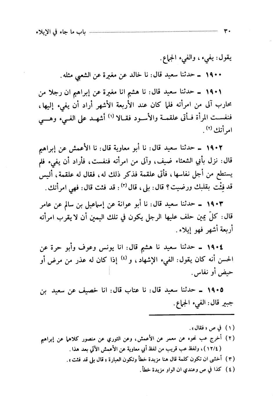 1901- حَدَّثَنَا هُشَيْمٌ ، أَخْبَرَنَا مُغِيرَةُ ، عَنْ إِبْرَاهِيمَ ، أَنَّ رَجُلاً مِنْ مُحَارِبٍ آلَى مِنِ امْرَأَتِهِ ، فَلَمَّا كَانَ عِنْدَ الأَرْبَعَةِ الأَشْهُرِ أَرَادَ أَنْ يَفِيءَ إِلَيْهَا ، فَنَفِسَتِ الْمَرْأَةُ ، فَأَتَى عَلْقَمَةَ وَالأَسْوَدَ فَقَالاَ : أَشْهَدُ عَلَى الْفَيْءِ ، وَهِيَ امْرَأَتُكَ.