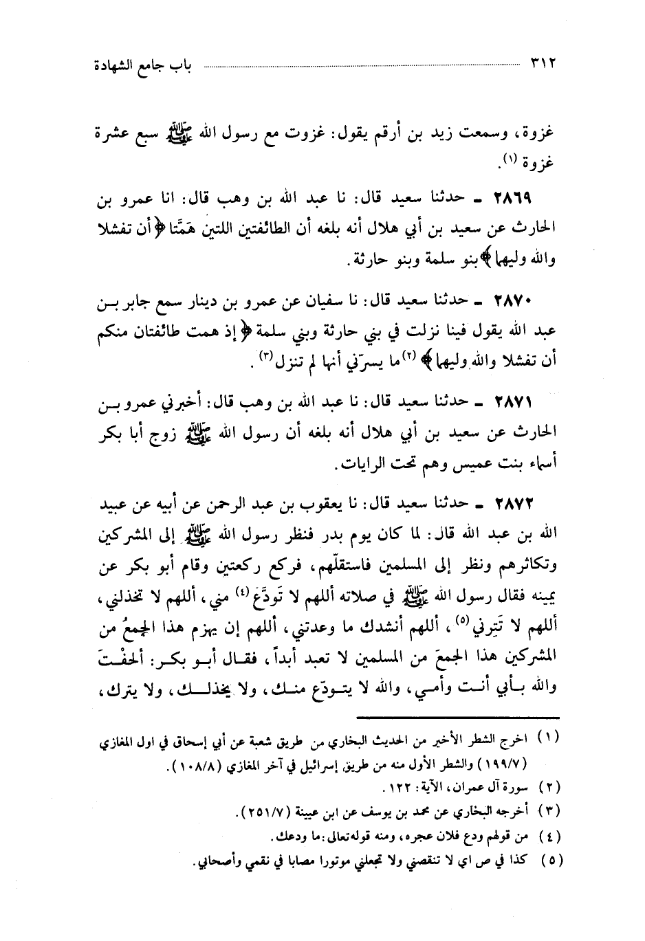 2869- حَدَّثَنَا عَبْدُ اللهِ بْنُ وَهْبٍ ، قَالَ : أَخْبَرَنَا عَمْرُو بْنُ الْحَارِثِ ، عَنْ سَعِيدِ بْنِ أَبِي هِلاَلٍ أَنَّهُ بَلَغَهُ أَنَّ الطَّائِفَتَيْنِ اللَّتَيْنِ هَمَّتَا {أَنْ تَفْشَلاَ وَاللَّهُ وَلِيُّهُمَا} بَنُو سَلِمَةَ ، وَبَنُو حَارِثَةَ.