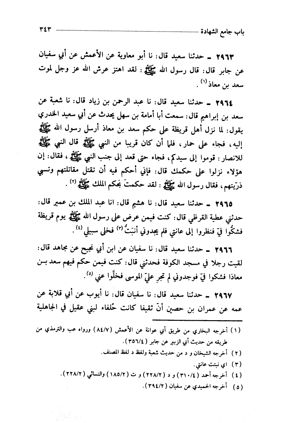 2963- حَدَّثَنَا أَبُو مُعَاوِيَةَ ، عَنِ الأَعْمَشِ ، عَنْ أَبِي سُفْيَانَ ، عَنْ جَابِرٍ ، قَالَ : قَالَ رَسُولُ اللهِ صَلَّى اللَّهُ عَلَيْهِ وَسَلَّمَ : لَقَدِ اهْتَزَّ عَرْشُ اللهِ عَزَّ وَجَلَّ لِمَوْتِ سَعْدِ بْنِ مُعَاذٍ.