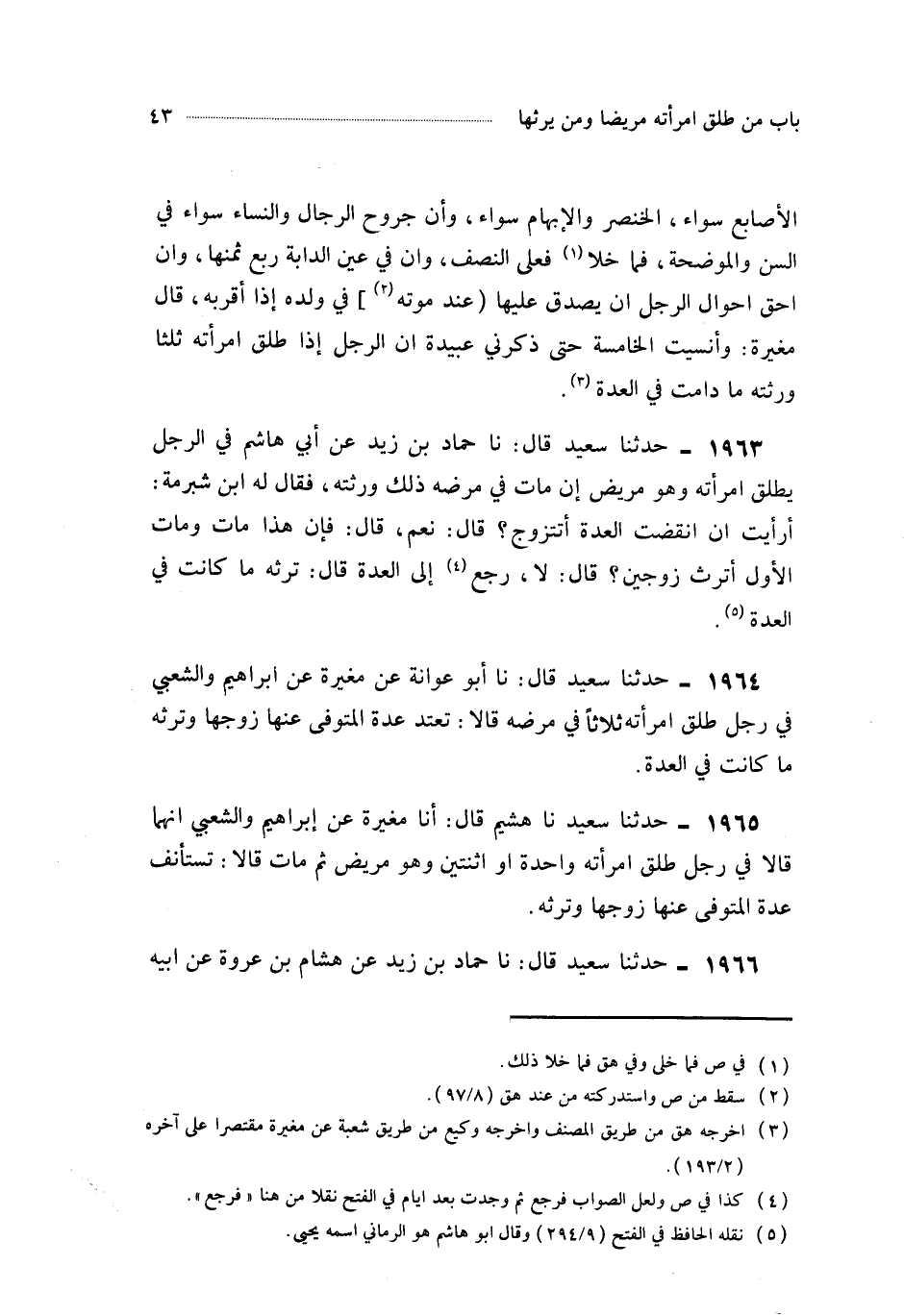 1965- حَدَّثَنَا هُشَيْمٌ ، قَالَ : أَخْبَرَنَا مُغِيرَةُ ، عَنْ إِبْرَاهِيمَ ، وَالشَّعْبِيِّ ، أَنَّهُمَا قَالاَ فِي رَجُلٍ طَلَّقَ امْرَأَتَهُ وَاحِدَةً أَوِ اثْنَتَيْنِ وَهُوَ مَرِيضٌ ، ثُمَّ مَاتَ قَالاَ : تَسْتَأْنِفُ عِدَّةَ الْمُتَوَفَّى عَنْهَا زَوْجُهَا وَتَرِثُهُ.