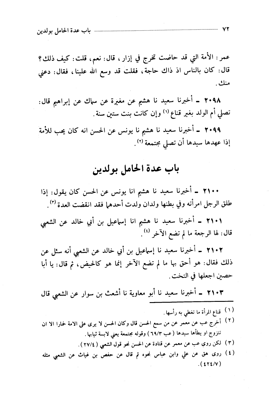 2101- أَخْبَرَنَا سَعِيدٌ ، حَدَّثَنَا هُشَيْمٌ ، أَخْبَرَنَا إِسْمَاعِيلُ بْنُ أَبِي خَالِدٍ ، عَنِ الشَّعْبِيِّ ، قَالَ : لَهَا الرَّجْعَةُ مَا لَمْ تَضَعِ الآخَرَ.