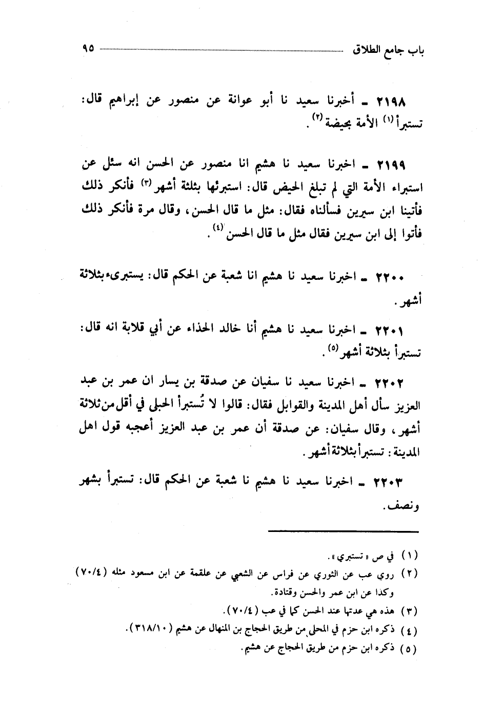 2202- أَخْبَرَنَا سَعِيدٌ ، حَدَّثَنَا سُفْيَانُ ، عَنْ صَدَقَةَ بْنِ يَسَارٍ ، أَنَّ عُمَرَ بْنَ عَبْدِ الْعَزِيزِ ، سَأَلَ أَهْلَ الْمَدِينَةِ وَالْقَوَابِلَ فَقَالَ : قَالُوا : لاَ تُسْتَبْرَأُ الْحُبْلَى فِي أَقَلَّ مِنْ ثَلاَثَةِ أَشْهُرٍ وَقَالَ سُفْيَانُ عَنْ صَدَقَةَ أَنَّ عُمَرَ بْنَ عَبْدِ الْعَزِيزِ أَعْجَبَهُ قَوْلُ أَهْلِ الْمَدِينَةِ : تُسْتَبْرَأُ بِثَلاَثَةِ أَشْهُرٍ.