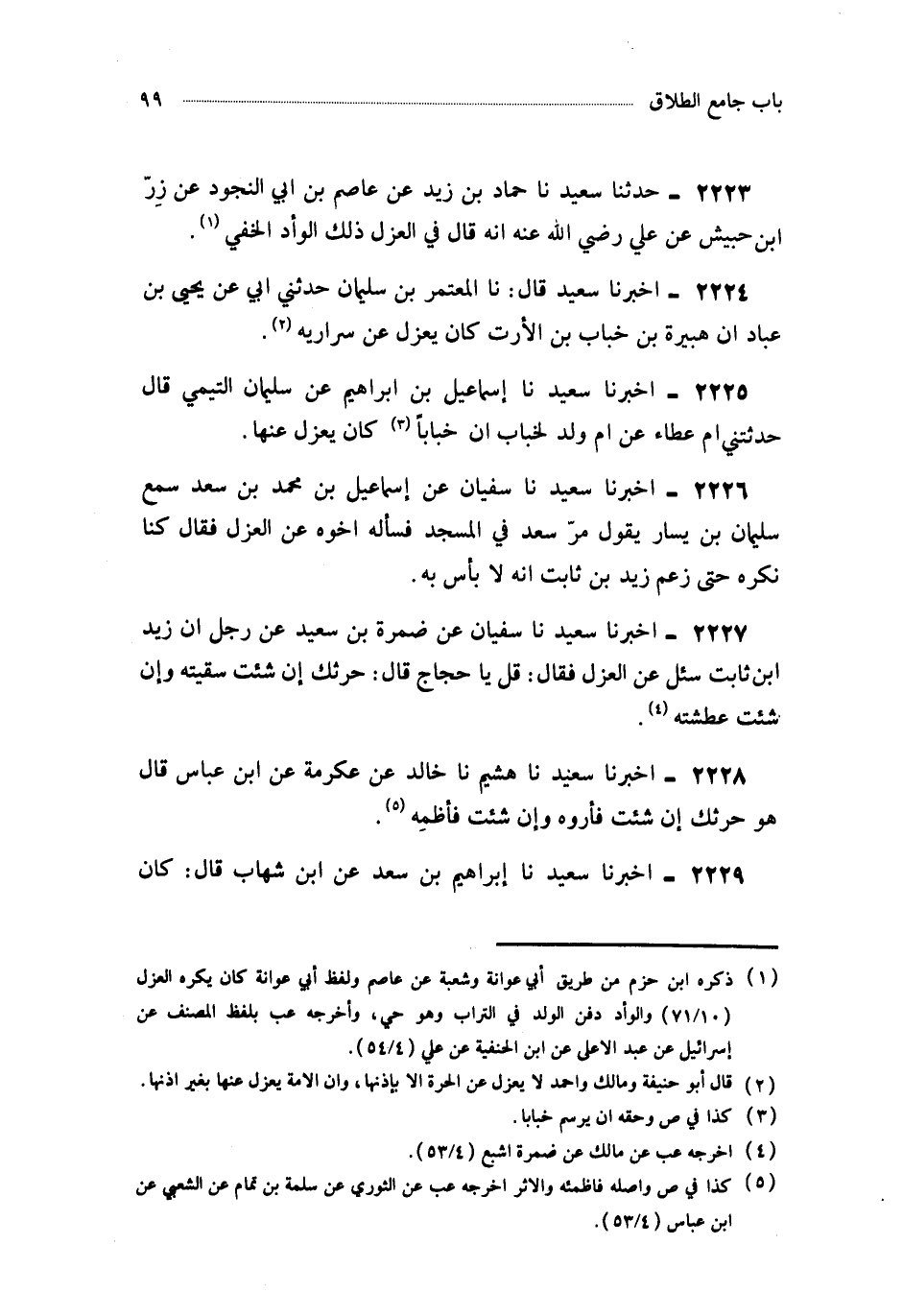 2224- أَخْبَرَنَا سَعِيدٌ ، حَدَّثَنَا الْمُعْتَمِرُ بْنُ سُلَيْمَانَ ، حَدَّثَنِي أَبِي ، عَنْ يَحْيَى بْنِ عَبَّادٍ ، أَنَّ هُبَيْرَةَ بْنَ خَبَّابِ بْنِ الأَرَتِّ كَانَ يَعْزِلُ عَنْ سَرَارِيهِ.
