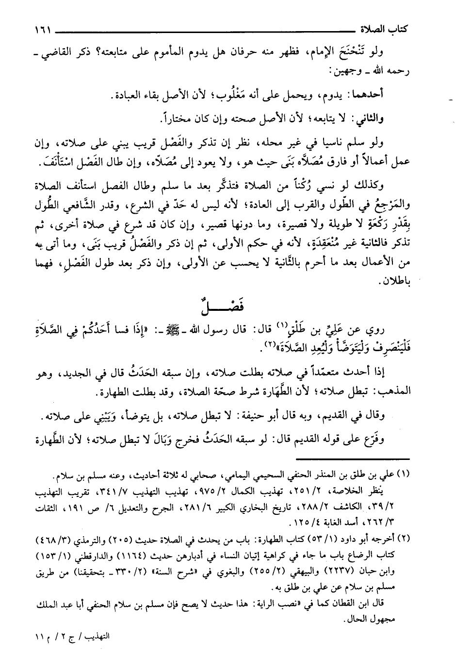 روي عن علي بن طَلْقٍ قال: قال رسول الله- صلى الله عليه وسلم-: "إذا فسا أحدكم في الصلاة فلينصرف وليتوضأ وليُعِدِ الصلاة".