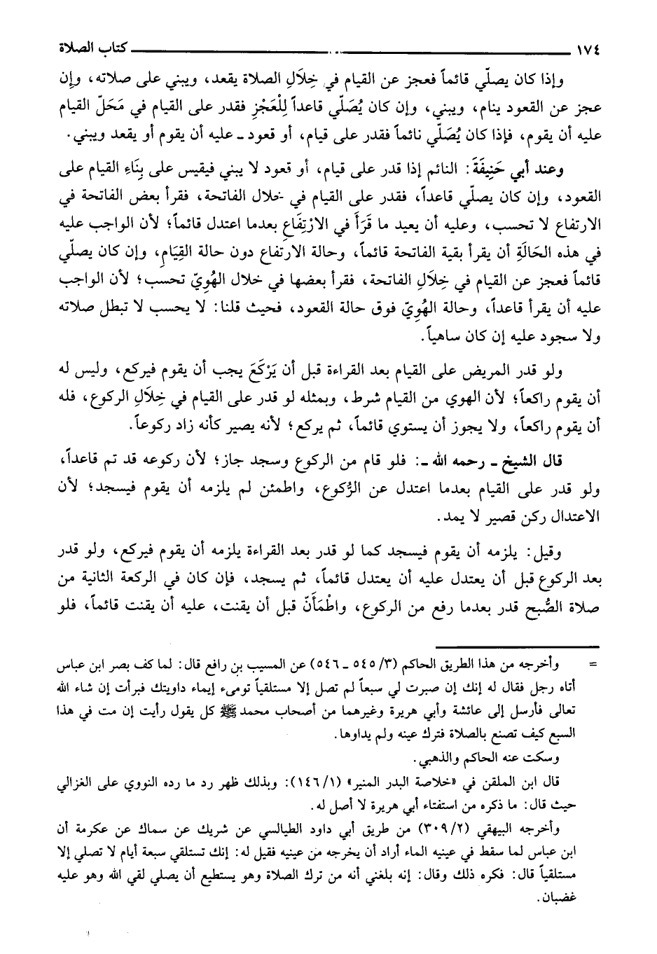 وإذا كان يصلي قائماً فعجز عن القيام في خلال الصلاة يقعد، ويبني على صلاته، وإن عجز عن القعود ينام، ويبني، وإن كان يُصلي قاعداً للعجز فقدر على القيام في محل القيام عليه أن يقوم، فإذا كان يصلي نائماً فقدر على قيام، أو قعود- عليه أن يقوم أو يقعد ويبني.