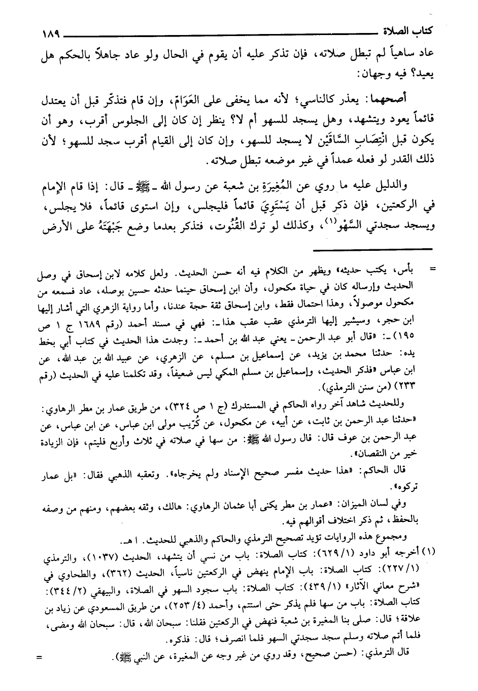 عاد ساهياً لم تبطل صلاته، فإن تذكر عليه أن يقوم في الحال ولو عاد جاهلاً بالحكم هل يعيد؟ فيه وجهان: