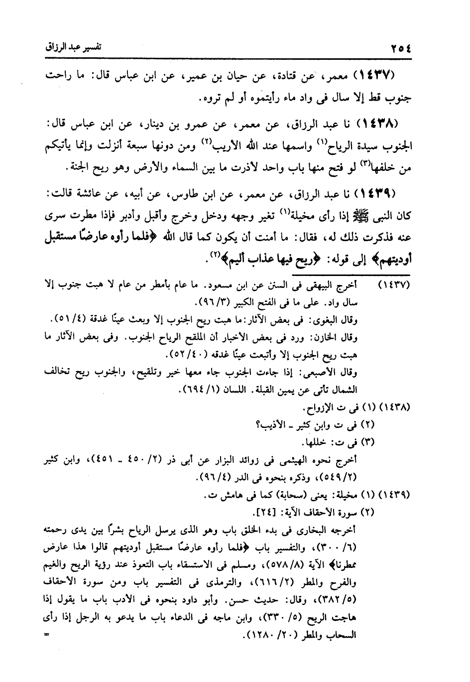 1437 - عَنْ مَعْمَرٍ , عَنْ قَتَادَةَ , عَنْ حَيَّانَ بْنِ عُمَيْرٍ , عَنِ ابْنِ عَبَّاسٍ , قَالَ: «§مَا رَاحَتْ جَنُوبٌ قَطُّ إِلَّا سَالَ فِي وَادٍ مَاءٌ رَأَيْتُمُوهُ , أَوْ لَمْ تَرَوْهُ»