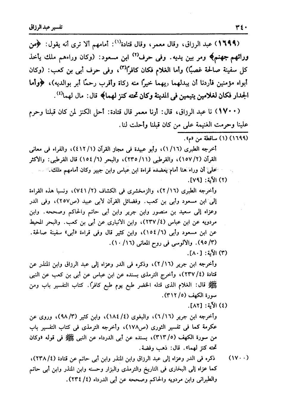 1703 - نا عَبْدُ الرَّزَّاقِ قَالَ: أرنا ابْنُ عُيَيْنَةَ , عَنْ حُمَيْدٍ , عَنْ مُجَاهِدٍ فِي قَوْلِهِ تَعَالَى: {§وَكَانَ تَحْتَهُ كَنْزٌ لَهُمَا} [الكهف: 82] , قَالَ: «صُحُفٌ مِنْ عِلْمٍ»