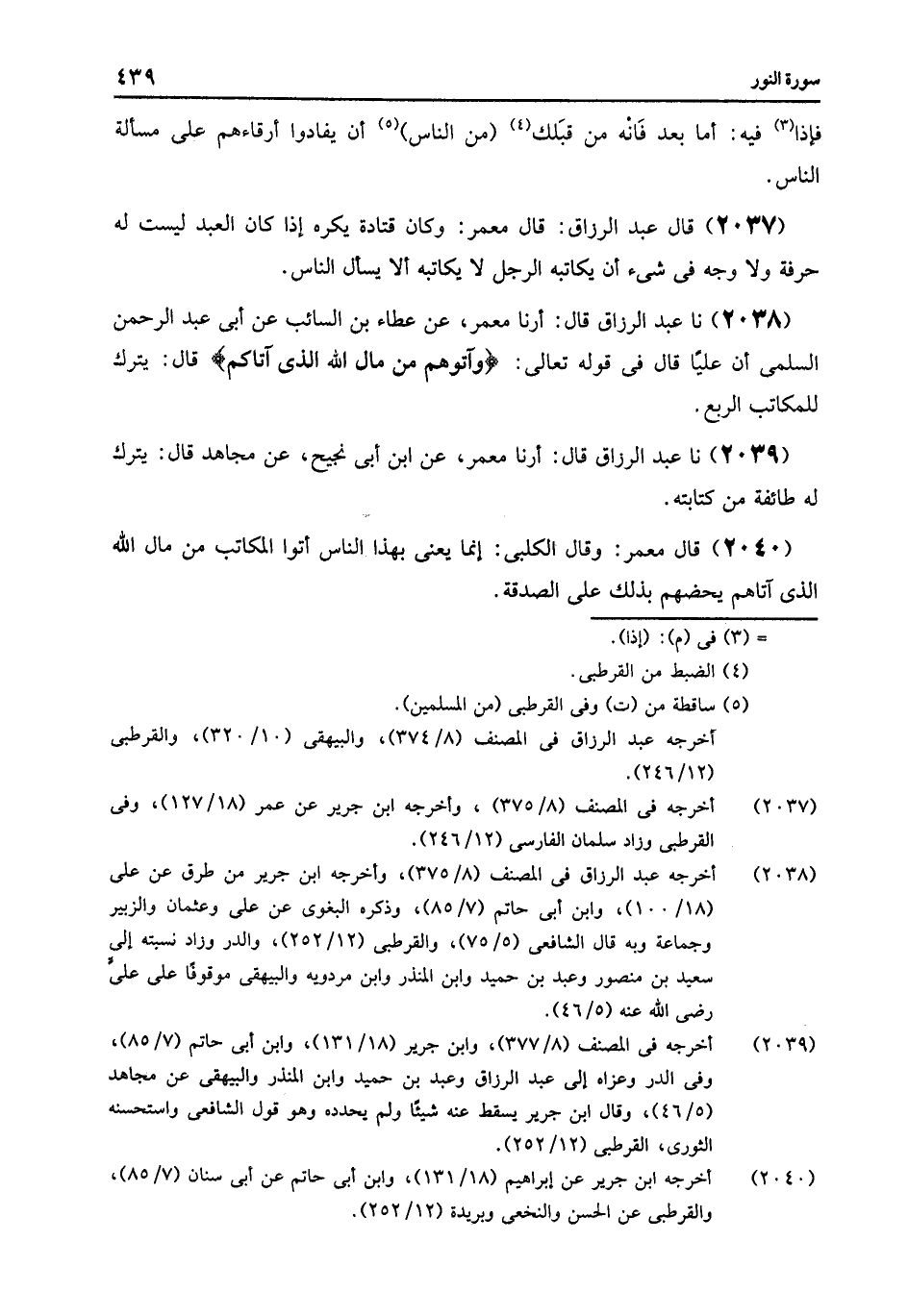 2040 - قَالَ مَعْمَرٌ: وَقَالَ الْكَلْبِيُّ: «§إِنَّمَا يَعْنِي بِهَذَا النَّاسَ آتُوا الْمُكَاتَبَ مِنْ مَالِ اللَّهِ الَّذِي آتَاهُمْ يَحُضُّهُمْ بِذَلِكَ عَلَى الصَّدَقَةِ»