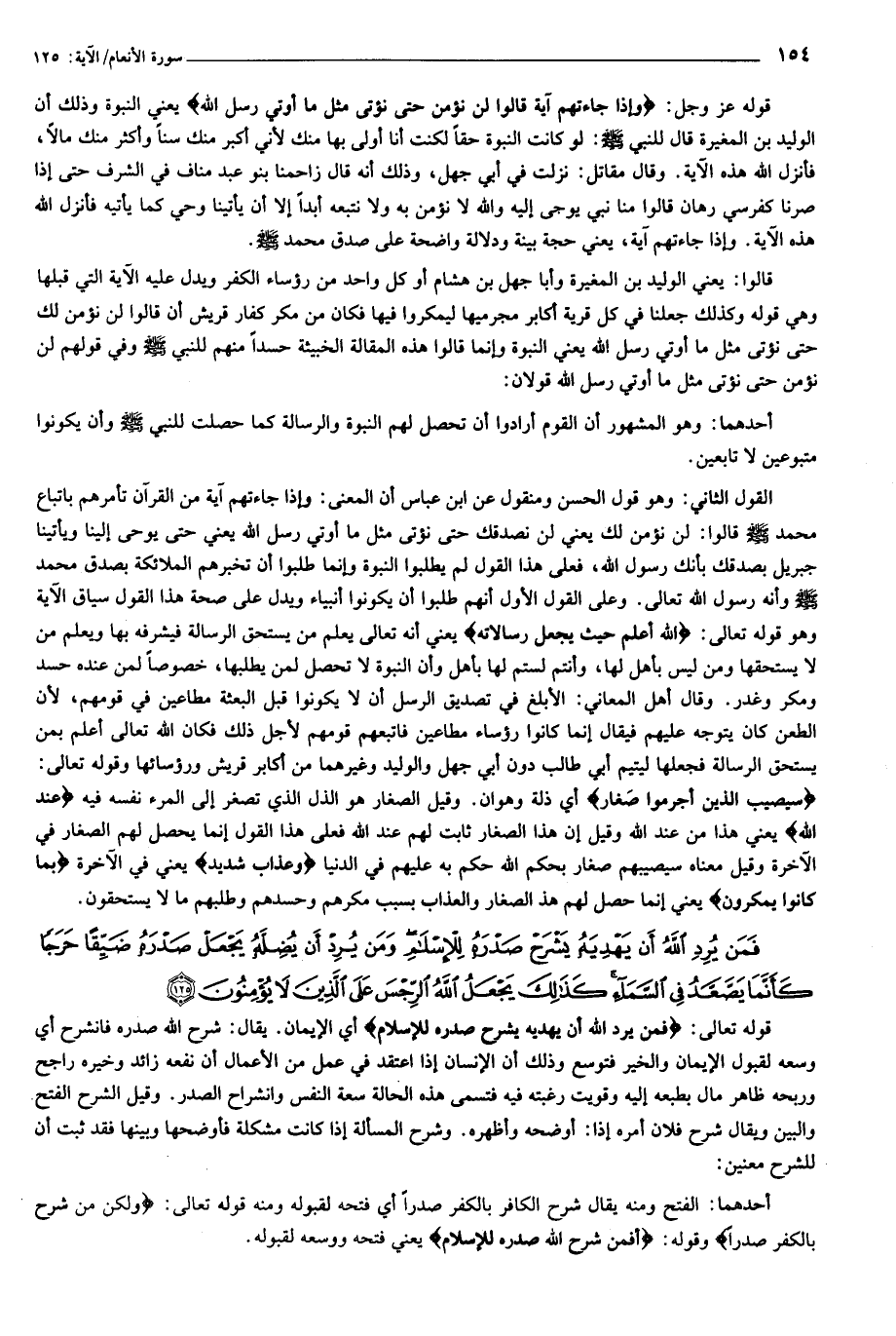 فَمَنْ يُرِدِ اللَّهُ أَنْ يَهْدِيَهُ يَشْرَحْ صَدْرَهُ لِلْإِسْلامِ وَمَنْ يُرِدْ أَنْ يُضِلَّهُ يَجْعَلْ صَدْرَهُ ضَيِّقاً حَرَجاً كَأَنَّما يَصَّعَّدُ فِي السَّماءِ كَذلِكَ يَجْعَلُ اللَّهُ الرِّجْسَ عَلَى الَّذِينَ لا يُؤْمِنُونَ (125)