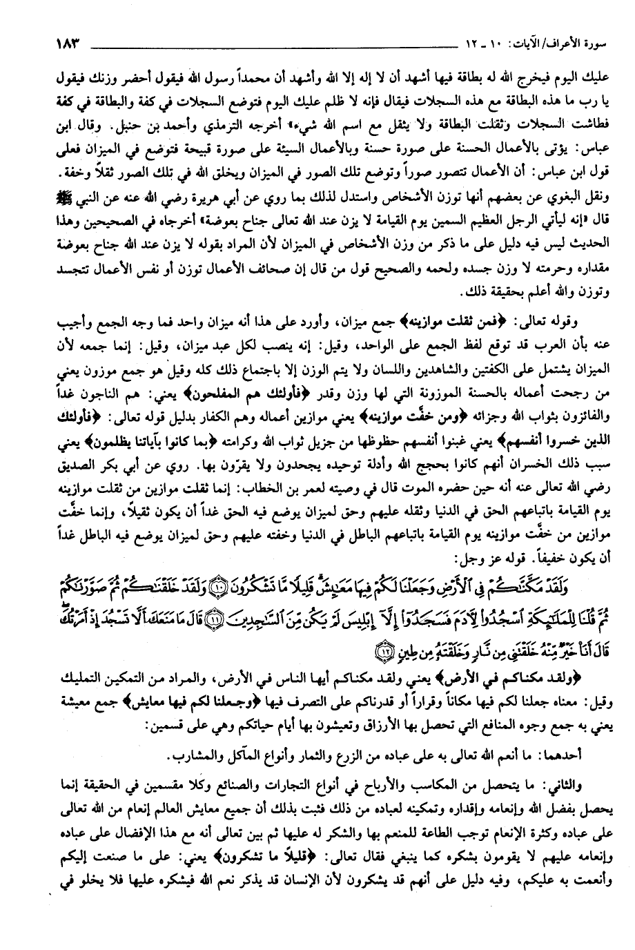 وَلَقَدْ مَكَّنَّاكُمْ فِي الْأَرْضِ وَجَعَلْنا لَكُمْ فِيها مَعايِشَ قَلِيلاً ما تَشْكُرُونَ (10) وَلَقَدْ خَلَقْناكُمْ ثُمَّ صَوَّرْناكُمْ ثُمَّ قُلْنا لِلْمَلائِكَةِ اسْجُدُوا لِآدَمَ فَسَجَدُوا إِلاَّ إِبْلِيسَ لَمْ يَكُنْ مِنَ السَّاجِدِينَ (11) قالَ ما مَنَعَكَ أَلاَّ تَسْجُدَ إِذْ أَمَرْتُكَ قالَ أَنَا خَيْرٌ مِنْهُ خَلَقْتَنِي مِنْ نارٍ وَخَلَقْتَهُ مِنْ طِينٍ (12)