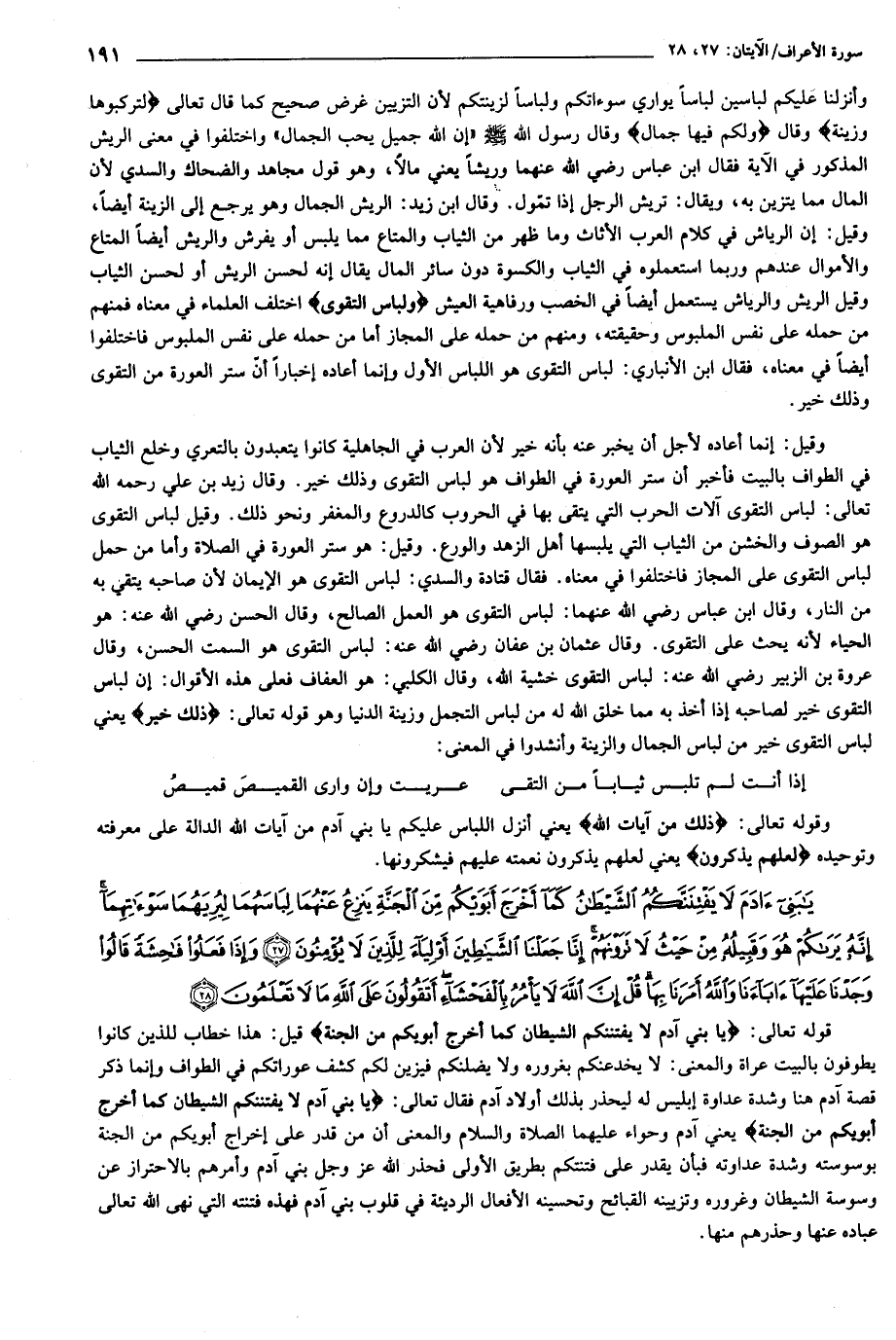 يا بَنِي آدَمَ لا يَفْتِنَنَّكُمُ الشَّيْطانُ كَما أَخْرَجَ أَبَوَيْكُمْ مِنَ الْجَنَّةِ يَنْزِعُ عَنْهُما لِباسَهُما لِيُرِيَهُما سَوْآتِهِما إِنَّهُ يَراكُمْ هُوَ وَقَبِيلُهُ مِنْ حَيْثُ لا تَرَوْنَهُمْ إِنَّا جَعَلْنَا الشَّياطِينَ أَوْلِياءَ لِلَّذِينَ لا يُؤْمِنُونَ (27) وَإِذا فَعَلُوا فاحِشَةً قالُوا وَجَدْنا عَلَيْها آباءَنا وَاللَّهُ أَمَرَنا بِها قُلْ إِنَّ اللَّهَ لا يَأْمُرُ بِالْفَحْشاءِ أَتَقُولُونَ عَلَى اللَّهِ ما لا تَعْلَمُونَ (28)