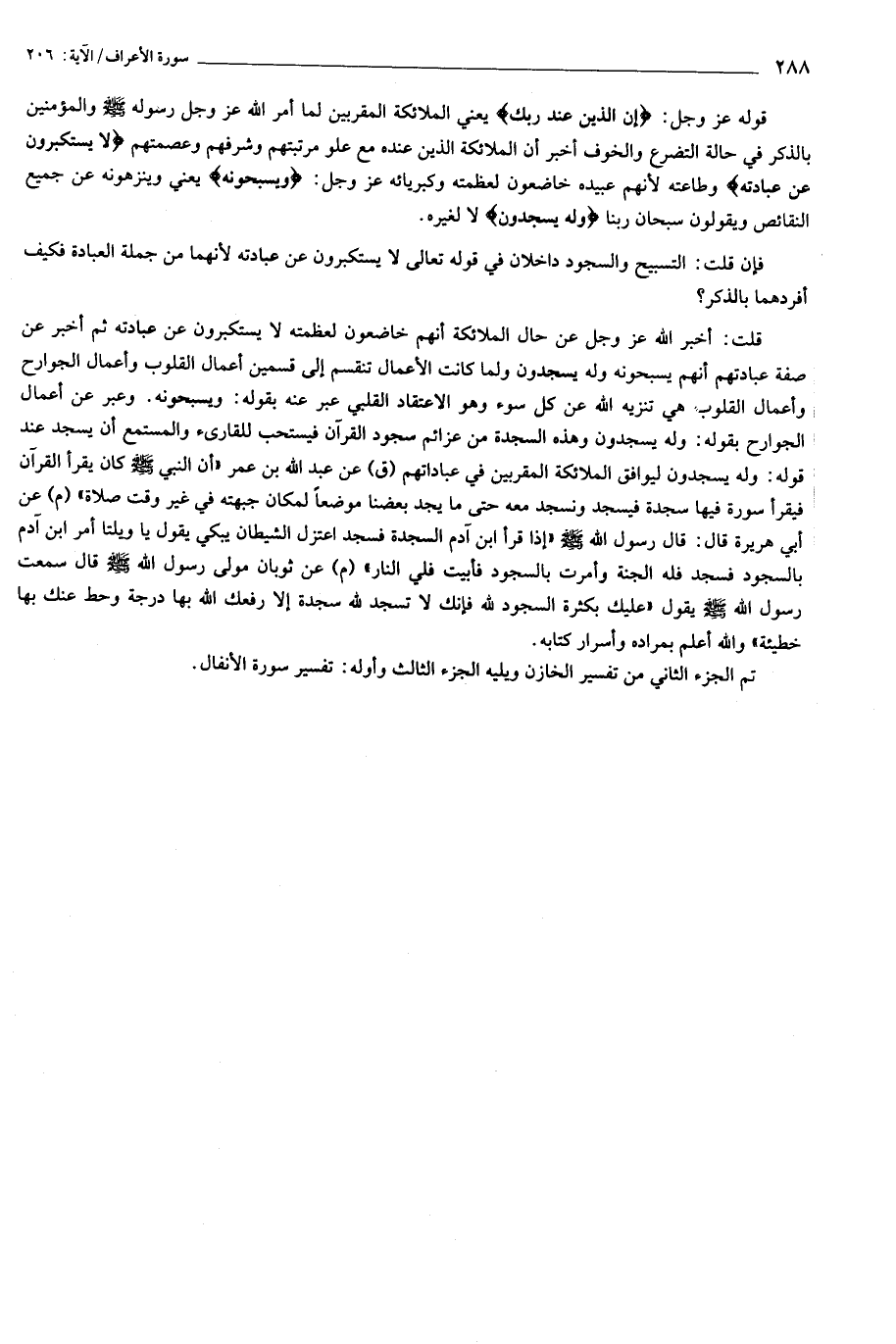 تم الجزء الثاني من تفسير الخازن ويليه الجزء الثالث وأوله: تفسير سورة الأنفال.