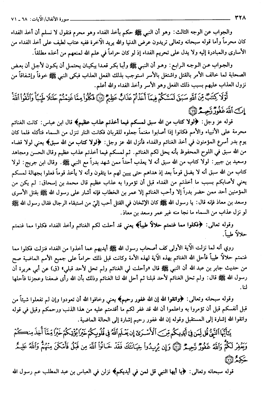 لَوْلا كِتابٌ مِنَ اللَّهِ سَبَقَ لَمَسَّكُمْ فِيما أَخَذْتُمْ عَذابٌ عَظِيمٌ (68) فَكُلُوا مِمَّا غَنِمْتُمْ حَلالاً طَيِّباً وَاتَّقُوا اللَّهَ إِنَّ اللَّهَ غَفُورٌ رَحِيمٌ (69)