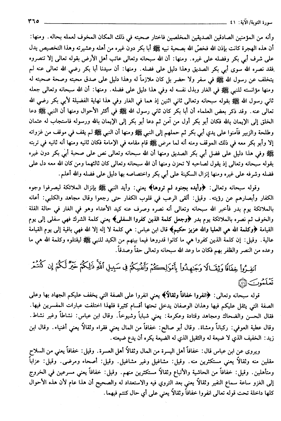 انْفِرُوا خِفافاً وَثِقالاً وَجاهِدُوا بِأَمْوالِكُمْ وَأَنْفُسِكُمْ فِي سَبِيلِ اللَّهِ ذلِكُمْ خَيْرٌ لَكُمْ إِنْ كُنْتُمْ تَعْلَمُونَ (41)