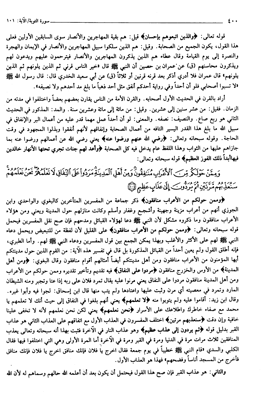 وَمِمَّنْ حَوْلَكُمْ مِنَ الْأَعْرابِ مُنافِقُونَ وَمِنْ أَهْلِ الْمَدِينَةِ مَرَدُوا عَلَى النِّفاقِ لا تَعْلَمُهُمْ نَحْنُ نَعْلَمُهُمْ سَنُعَذِّبُهُمْ مَرَّتَيْنِ ثُمَّ يُرَدُّونَ إِلى عَذابٍ عَظِيمٍ (101)