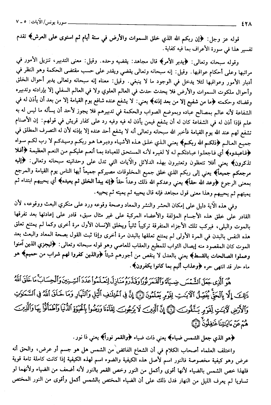 هُوَ الَّذِي جَعَلَ الشَّمْسَ ضِياءً وَالْقَمَرَ نُوراً وَقَدَّرَهُ مَنازِلَ لِتَعْلَمُوا عَدَدَ السِّنِينَ وَالْحِسابَ ما خَلَقَ اللَّهُ ذلِكَ إِلاَّ بِالْحَقِّ يُفَصِّلُ الْآياتِ لِقَوْمٍ يَعْلَمُونَ (5) إِنَّ فِي اخْتِلافِ اللَّيْلِ وَالنَّهارِ وَما خَلَقَ اللَّهُ فِي السَّماواتِ وَالْأَرْضِ لَآياتٍ لِقَوْمٍ يَتَّقُونَ (6) إِنَّ الَّذِينَ لا يَرْجُونَ لِقاءَنا وَرَضُوا بِالْحَياةِ الدُّنْيا وَاطْمَأَنُّوا بِها وَالَّذِينَ هُمْ عَنْ آياتِنا غافِلُونَ (7)