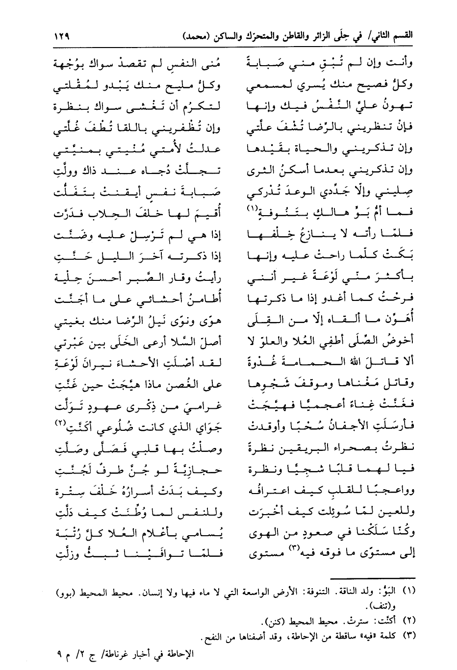 وللعين لمّا سوئلت كيف أخبرت ... وللنفس لما وطّنت كيف دلّت