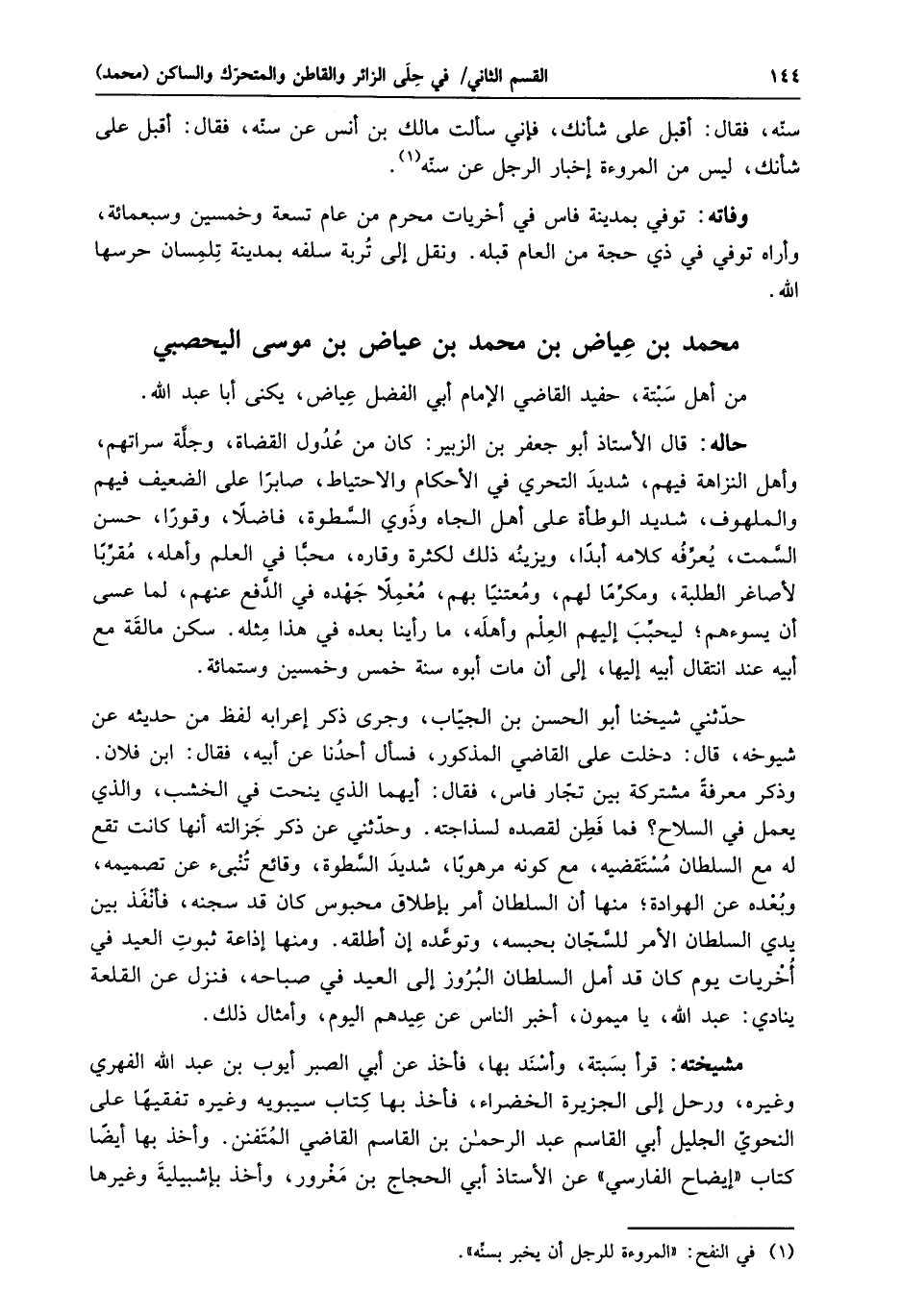 من أهل سبتة، حفيد القاضي الإمام أبي الفضل عياض، يكنى أبا عبد الله.