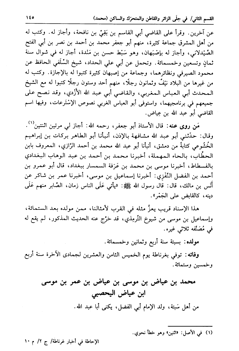 محمد بن عياض بن موسى بن عياض بن عمر بن موسى ابن عياض اليحصبي