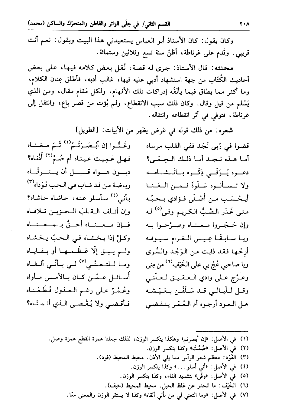 شعره: من ذلك قوله في غرض يظهر من الأبيات: [الطويل]