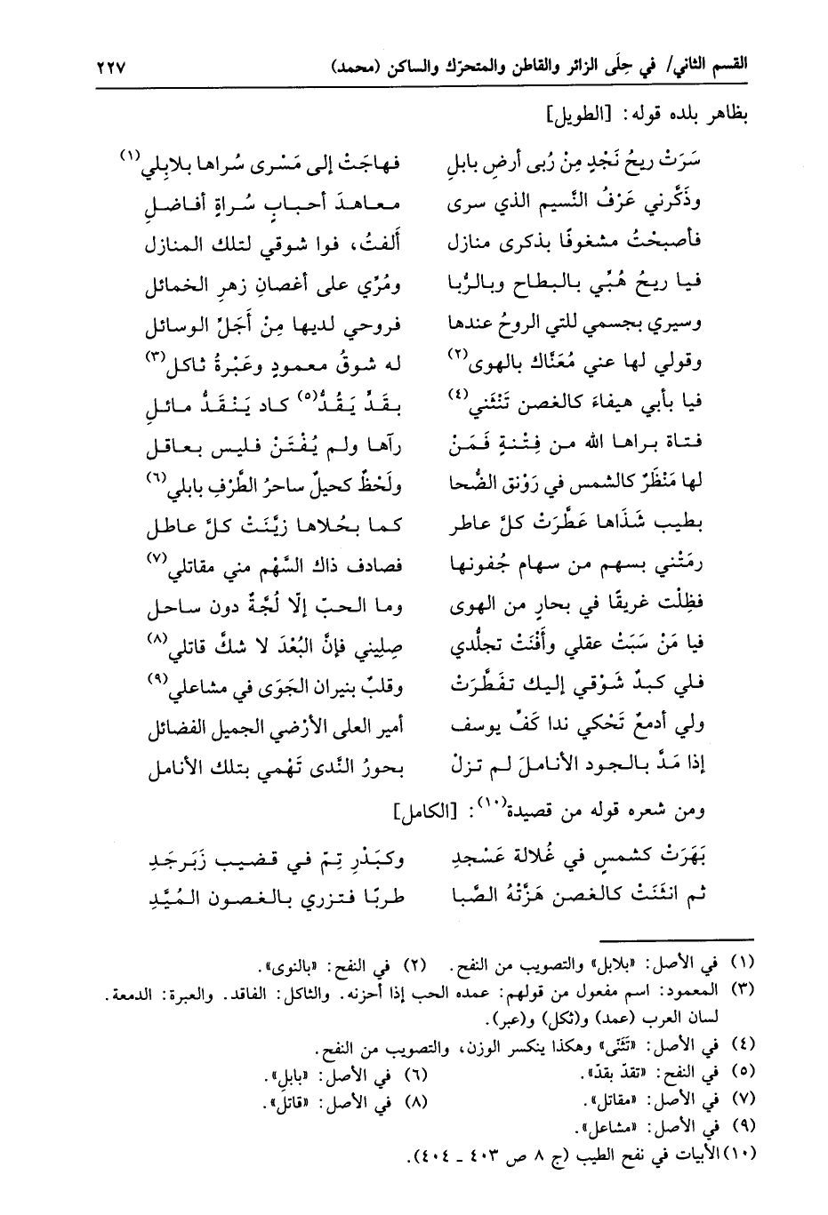 سرت ريح نجد من ربى أرض بابل ... فهاجت إلى مسرى سراها بلابلي «1»