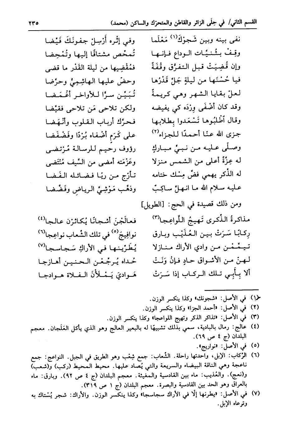تيمّمن من وادي الأراك منازلا ... يطرّينها في الأراك سجاسجا «7»