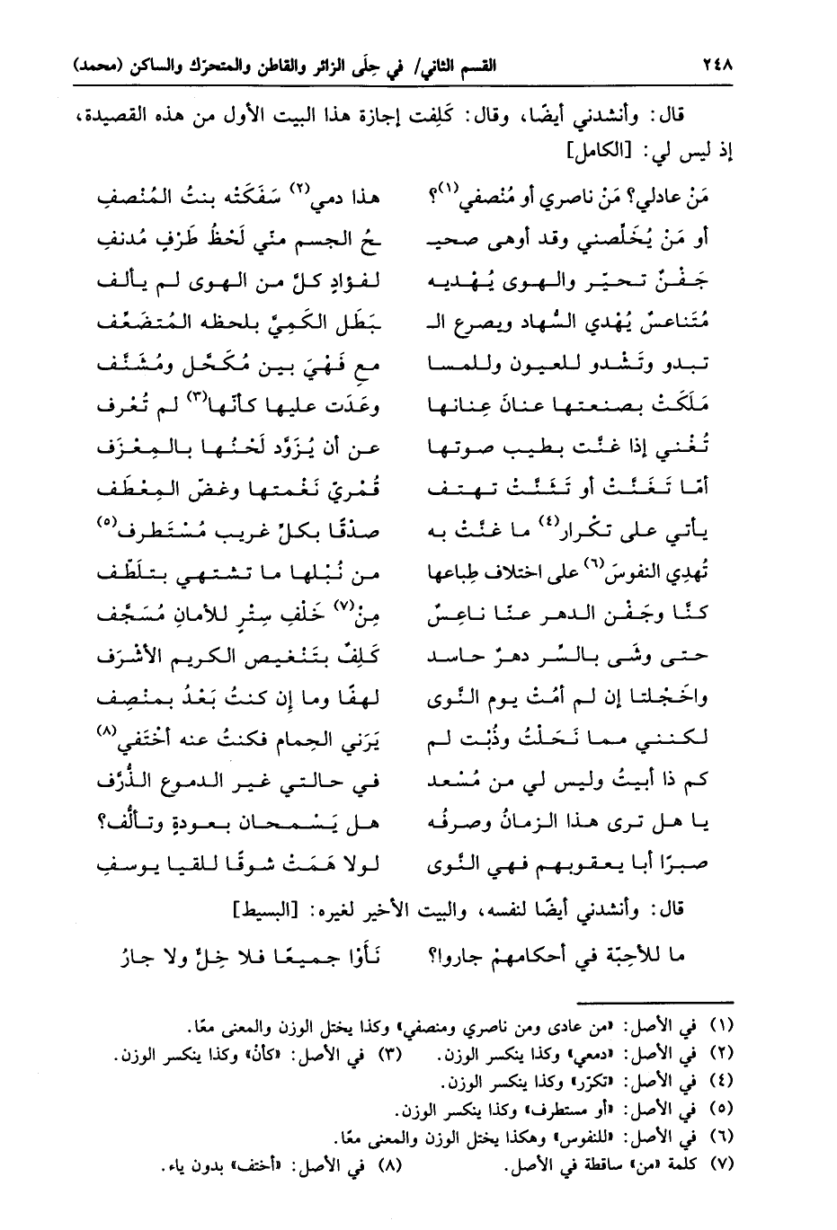 من عادلي؟ من ناصري أو منصفي «1» ؟ ... هذا دمي «2» سفكته بنت المنصف