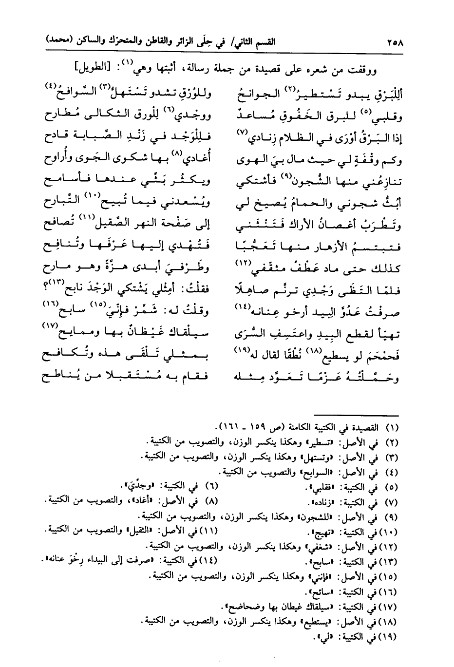 أللبرق يبدو تستطير «2» الجوانح ... وللورق تشدو تستهلّ «3» السّوافح «4»