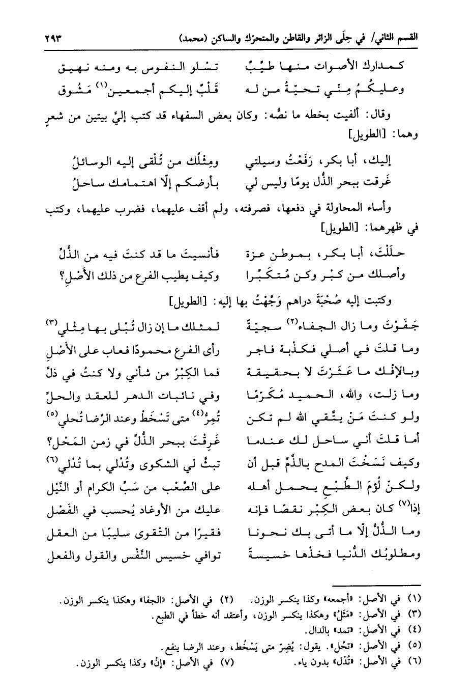 وأساء المحاولة في دفعها، فصرفته، ولم أقف عليهما، فضرب عليهما، وكتب في ظهرهما: [الطويل]