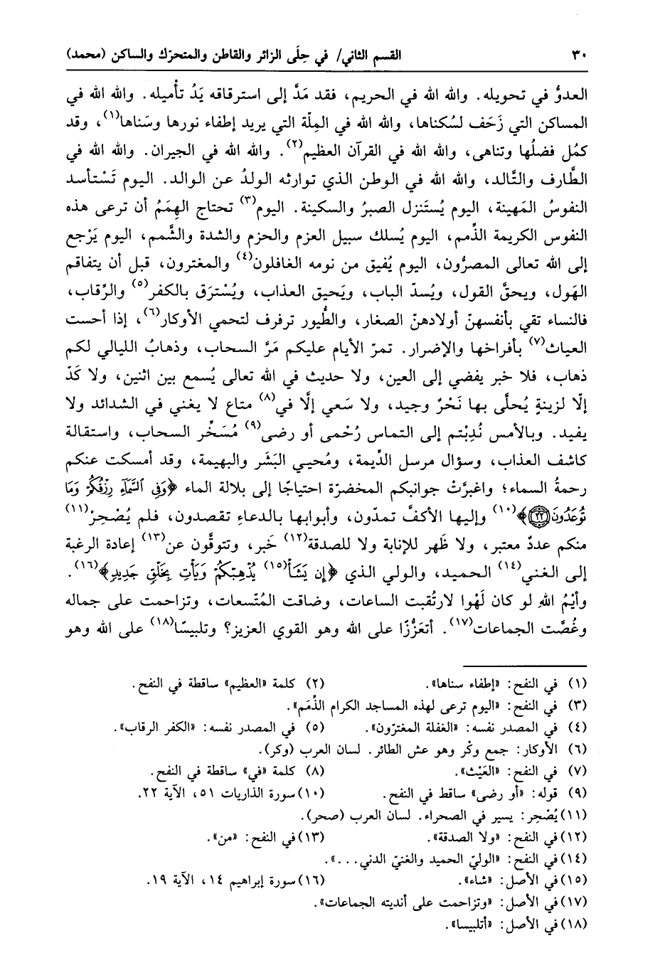 (22) «10» وإليها الأكفّ تمدّون، وأبوابها بالدعاء تقصدون، فلم يصحر «11» منكم عدد معتبر، ولا ظهر للإنابة ولا للصدقة «12» خبر، وتتوقّون عن «13» إعادة الرغبة إلى الغني «14» الحميد، والولي الذي إِنْ يَشَأْ «15» يُذْهِبْكُمْ وَيَأْتِ بِخَلْقٍ جَدِيدٍ