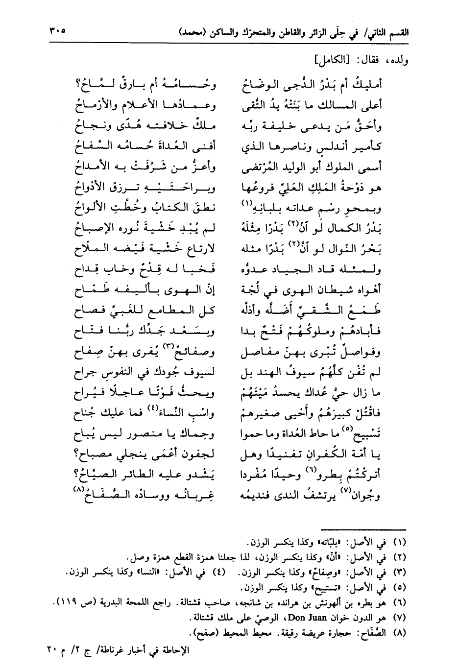 كأمير أندلس وناصرها الذي ... أفنى العداة حسامه السّفاح