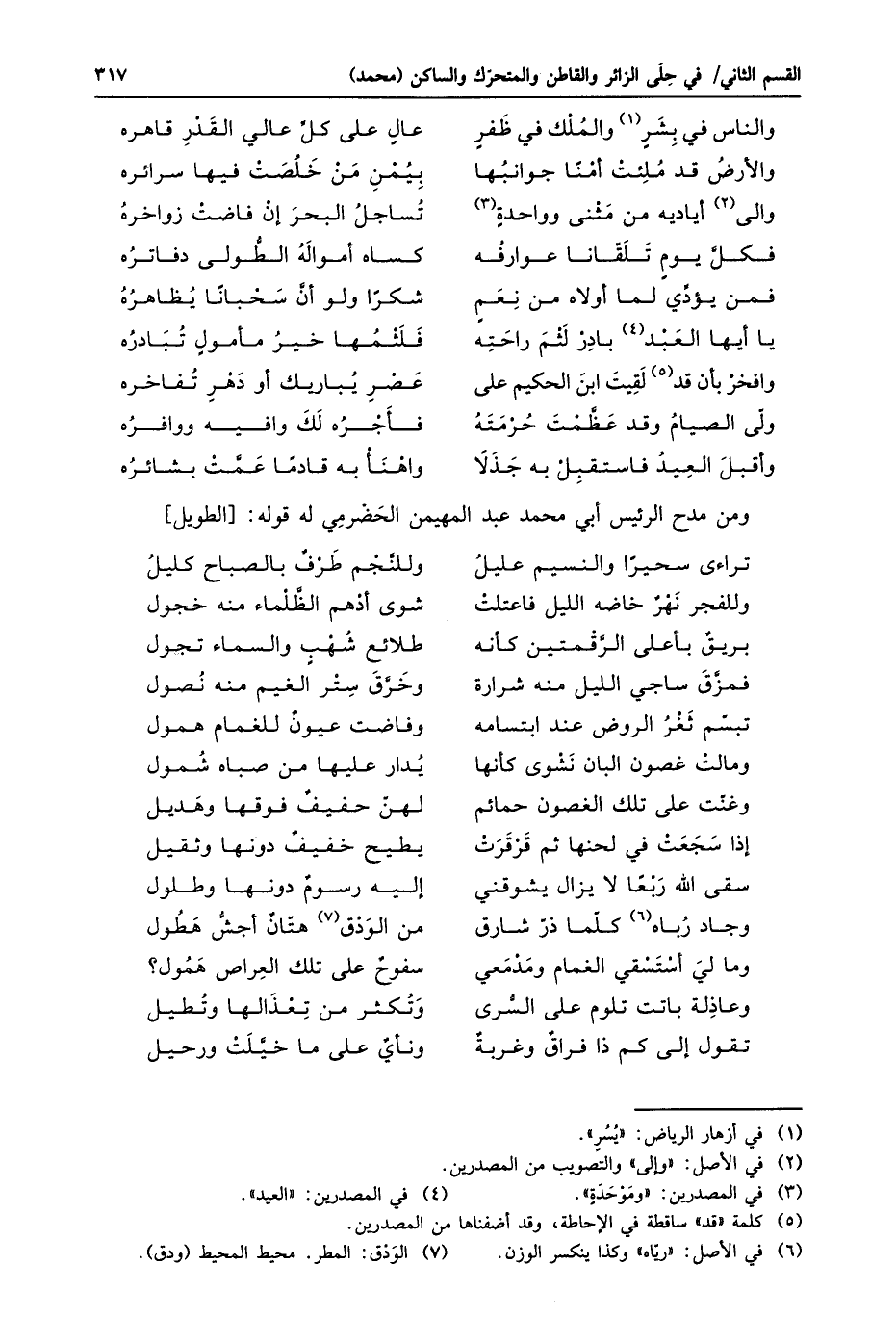 ومن مدح الرئيس أبي محمد عبد المهيمن الحضرمي له قوله: [الطويل]