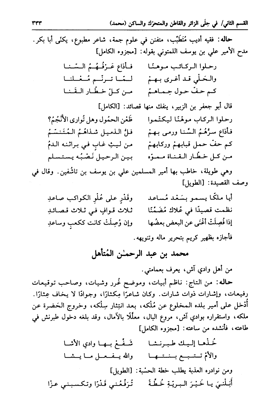 مدح الأمير علي بن يوسف اللمتوني بقوله: [مجزوء الكامل]