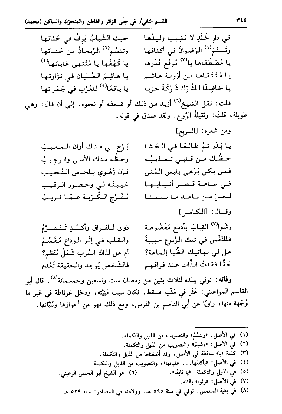 قلت: نقل الشيخ «6» أزيد من ذلك أو ضعفه أو نحوه. إلى أن قال: وهي طويلة، قلت: وثقيلة الرّوح. ولقد صدق في قوله.