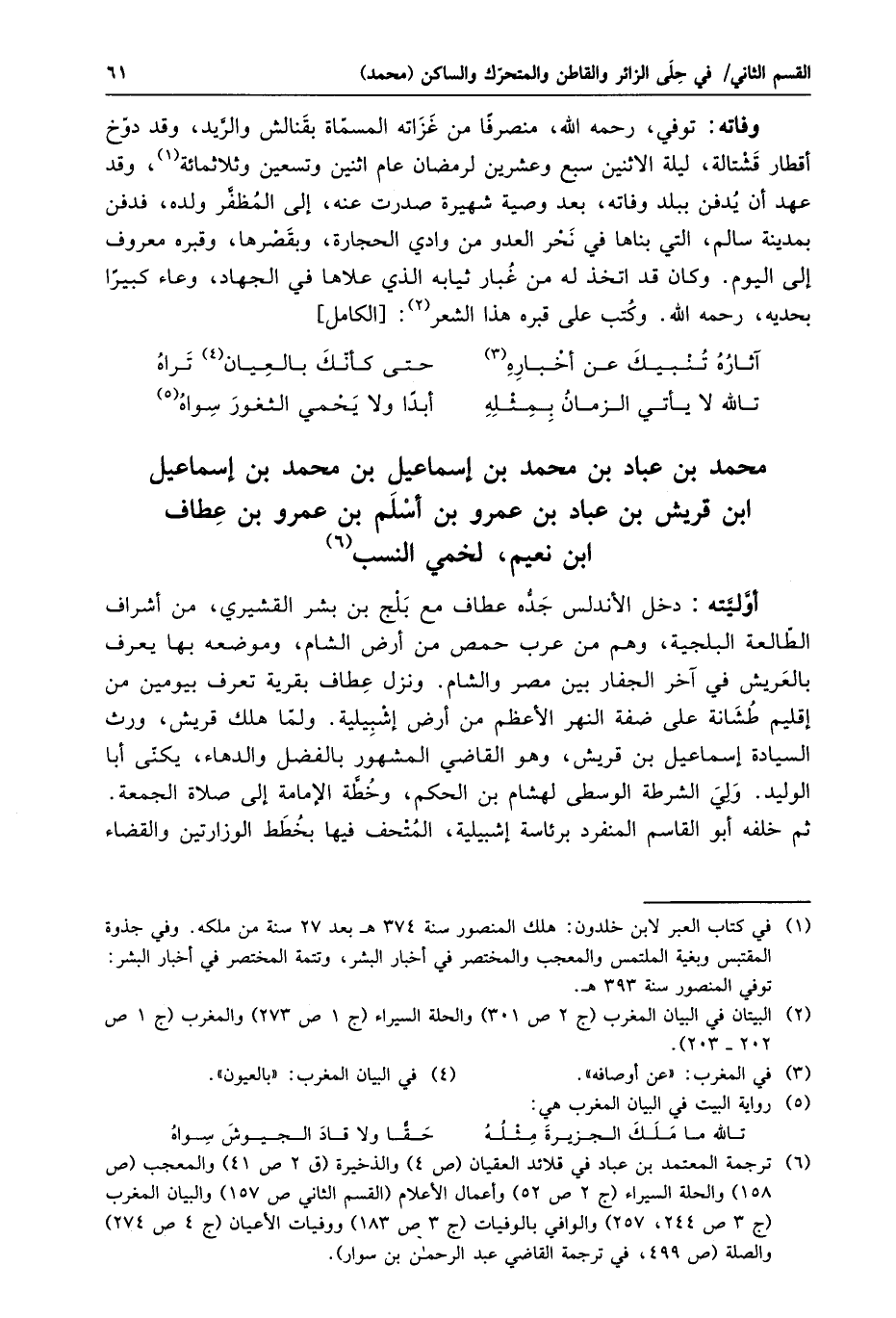محمد بن عباد بن محمد بن إسماعيل بن محمد بن إسماعيل ابن قريش بن عباد بن عمرو بن أسلم بن عمرو بن عطاف ابن نعيم، لخمي النسب «6»