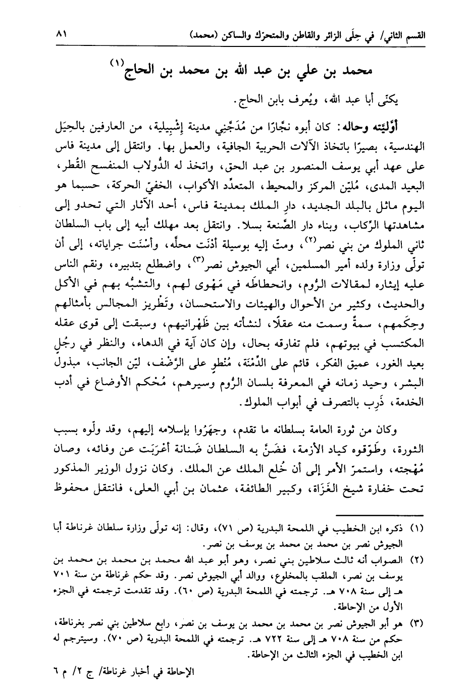 يكنّى أبا عبد الله، ويعرف بابن الحاج.