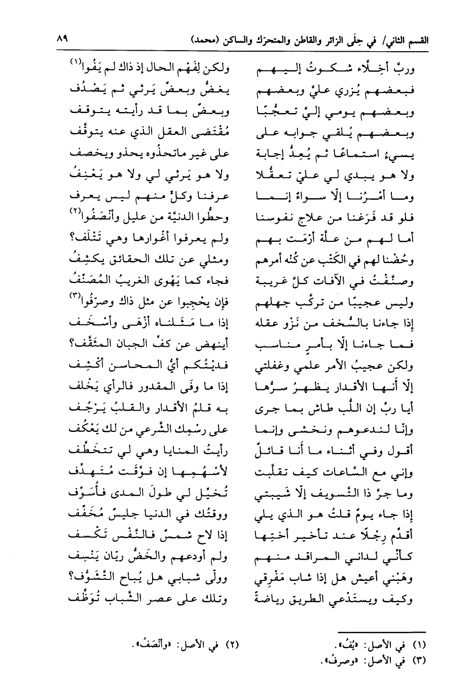 وليس عجيبا من تركّب جهلهم ... فإن يحجبوا عن مثل ذاك وصرّفوا «3»