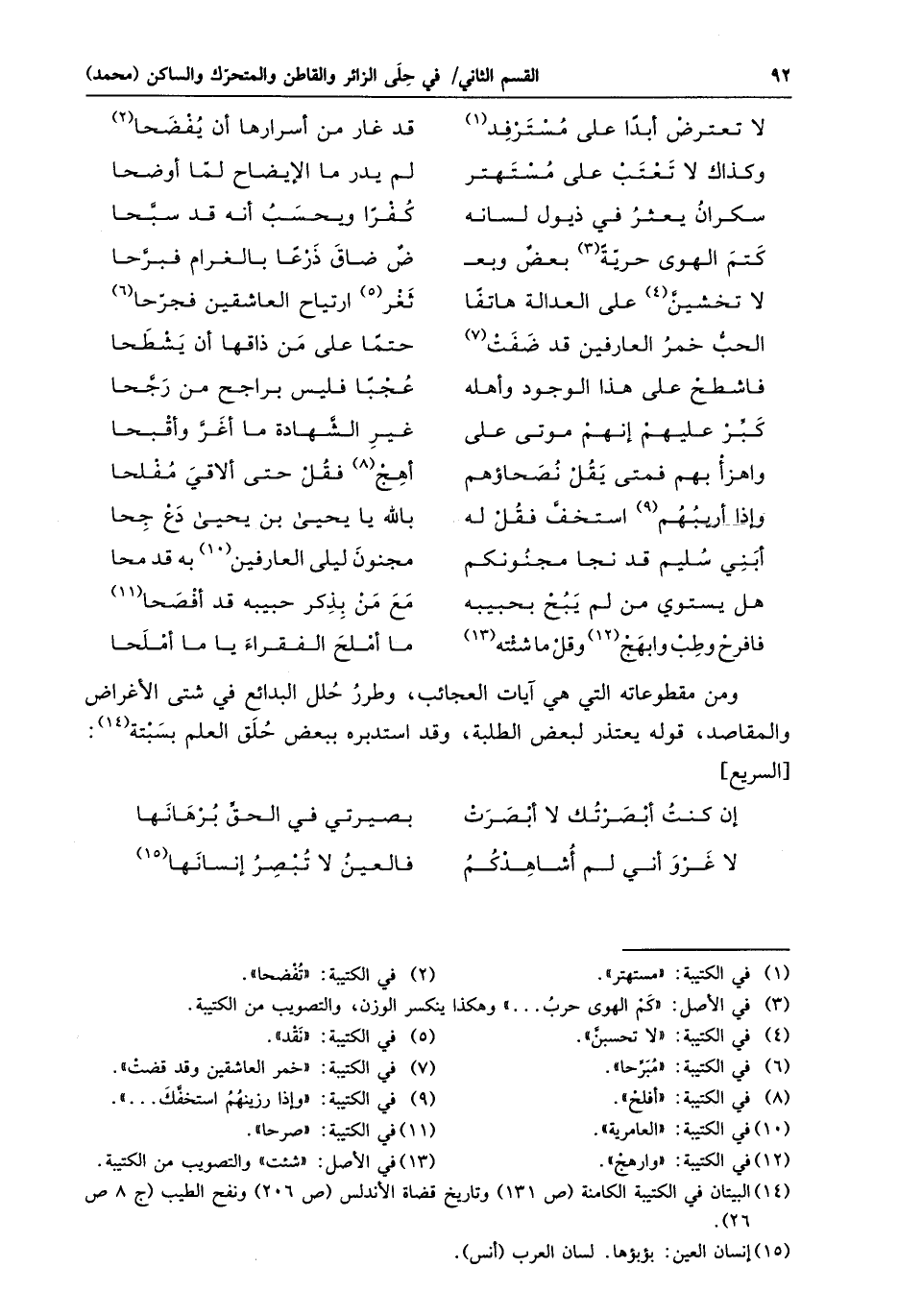 هل يستوي من لم يبح بحبيبه ... مع من بذكر حبيبه قد أفصحا «11»