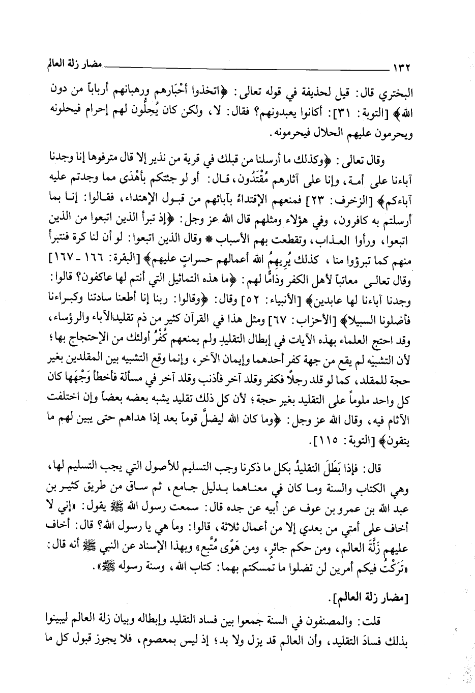 [مَضَارُّ زَلَّةِ الْعَالِمِ]