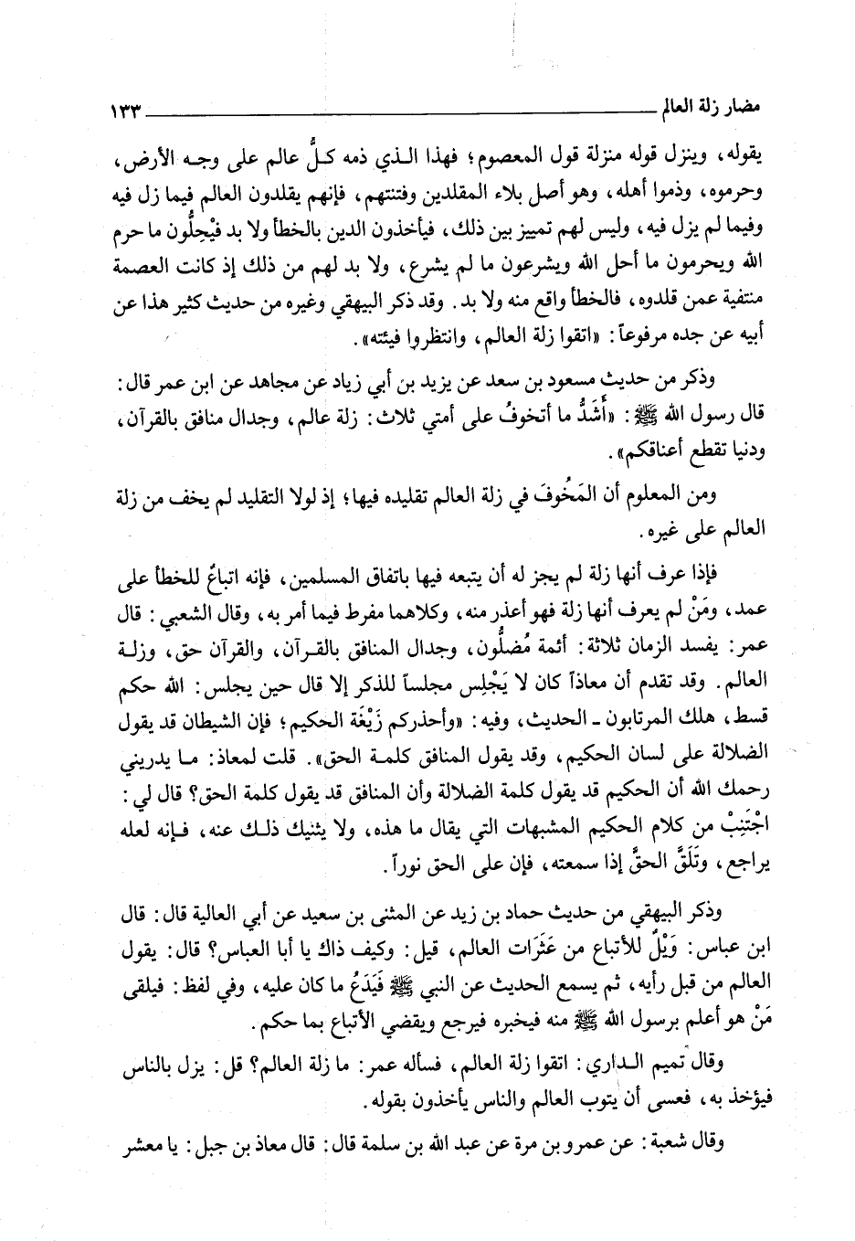 وَمِنْ الْمَعْلُومِ أَنَّ الْمَخُوفَ فِي زَلَّةِ الْعَالِمِ تَقْلِيدُهُ فِيهَا؛ إذْ لَوْلَا التَّقْلِيدُ لَمْ يَخَفْ مِنْ زَلَّةِ الْعَالِمِ عَلَى غَيْرِهِ.