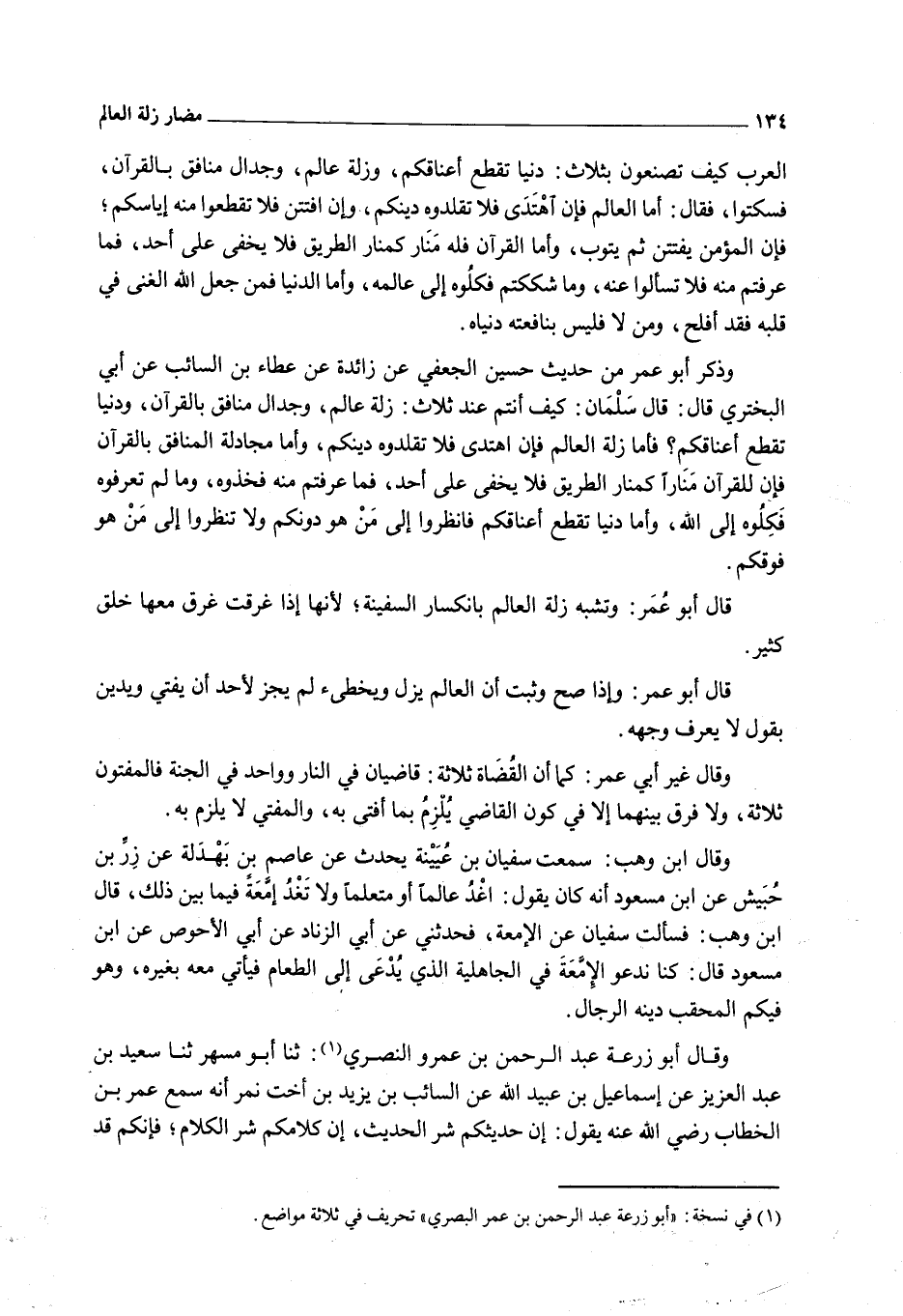 قَالَ أَبُو عُمَرَ: وَتُشَبَّهُ زَلَّةُ الْعَالِمِ بِانْكِسَارِ السَّفِينَةِ؛ لِأَنَّهَا إذَا غَرِقَتْ غَرِقَ مَعَهَا خَلْقٌ كَثِيرٌ.