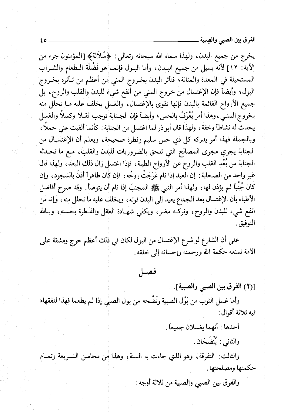 فَصْلٌ [ (2) الْفَرْقُ بَيْنَ الصَّبِيِّ وَالصَّبِيَّةِ]
