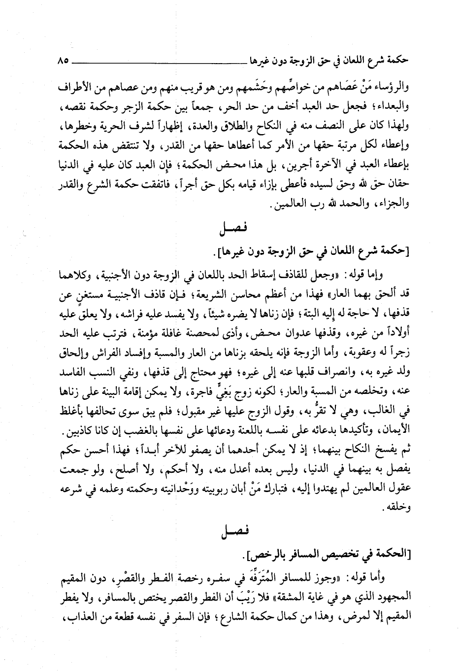 [فَصَلِّ حِكْمَةُ شَرْعِ اللِّعَانِ فِي حَقِّ الزَّوْجَةِ دُونَ غَيْرِهَا]
