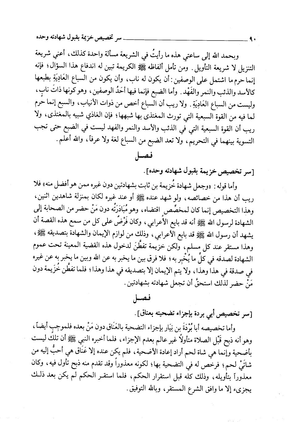 [فَصَلِّ سِرُّ تَخْصِيصِ خُزَيْمَةَ بِقَبُولِ شَهَادَتِهِ وَحْدَهُ]