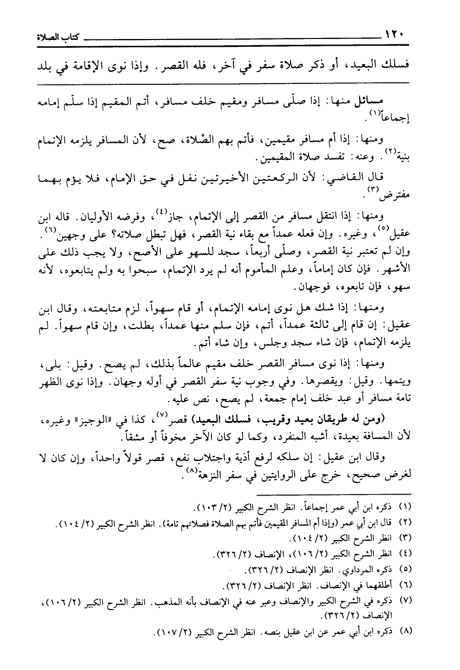 ـــــــــــــــــــــــــــــQمَسَائِلُ: مِنْهَا إِذَا صَلَّى مُسَافِرٌ وَمُقِيمٌ خَلْفَ مُسَافِرٌ، أَتَمَّ الْمُقِيمُ إِذَا سَلَّمَ إِمَامُهُ إِجْمَاعًا.
